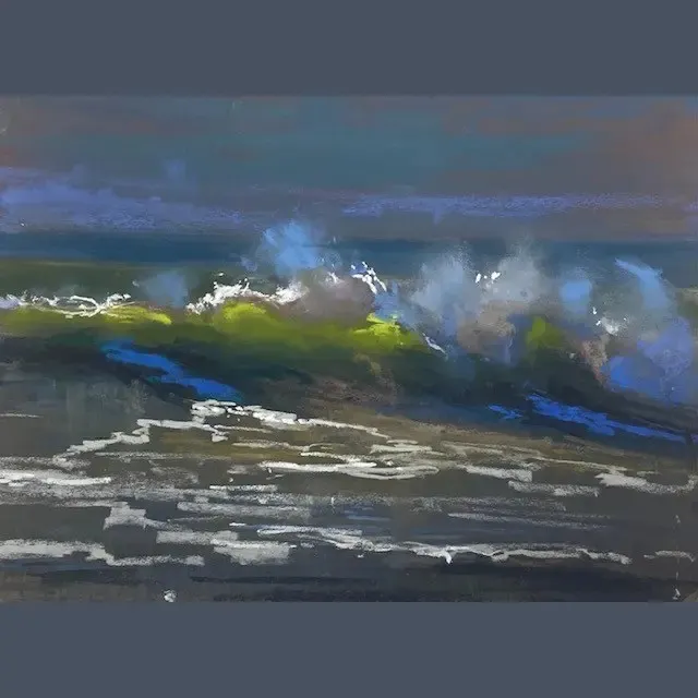 Create magic in pastel with this beautiful breaking wave in dramatic lighting. Learn the steps to create both depth of colour and the various strokes that will make this scene come alive. Beginners welcome, but suitable for those who’ve dabbled too.