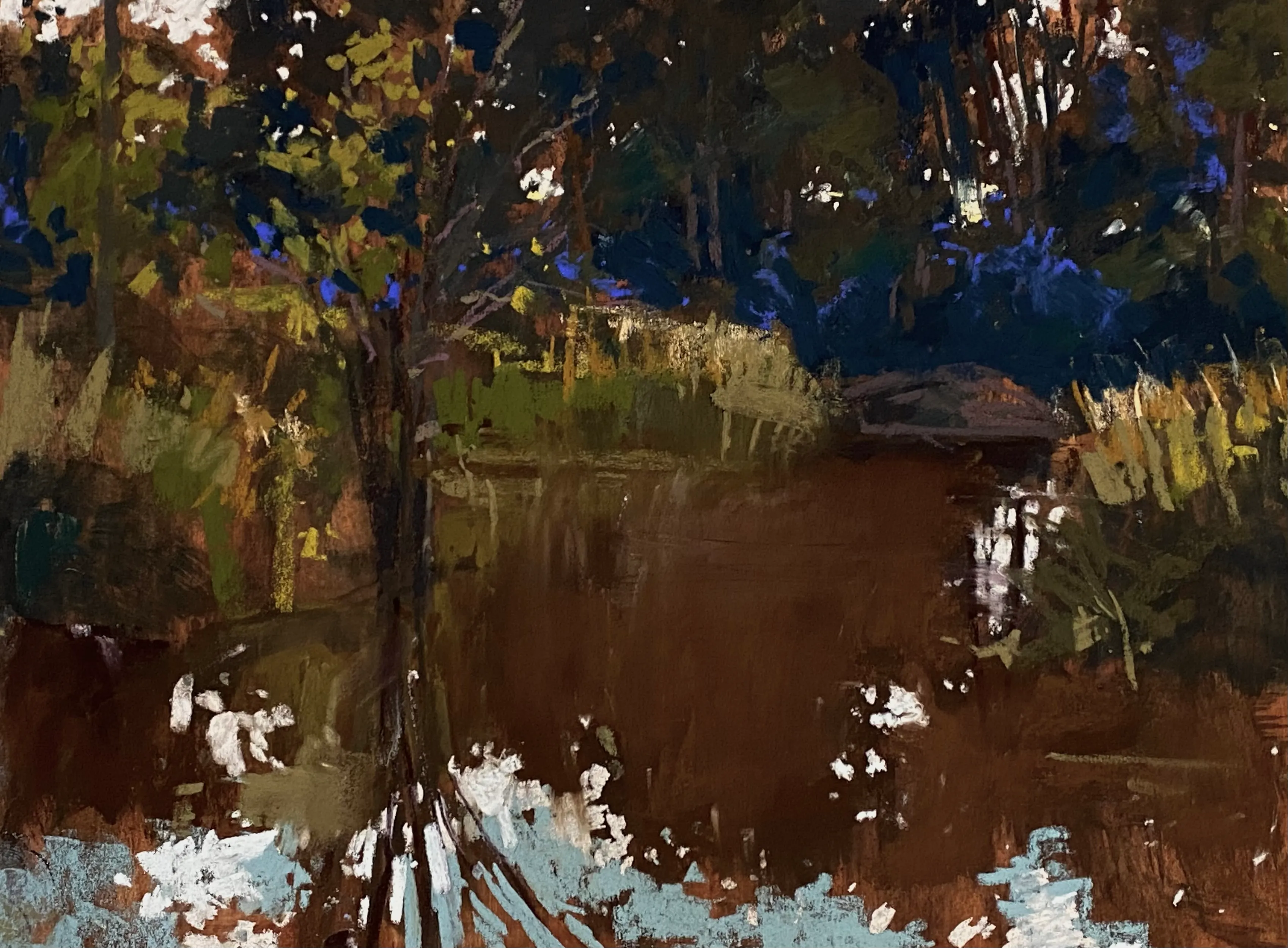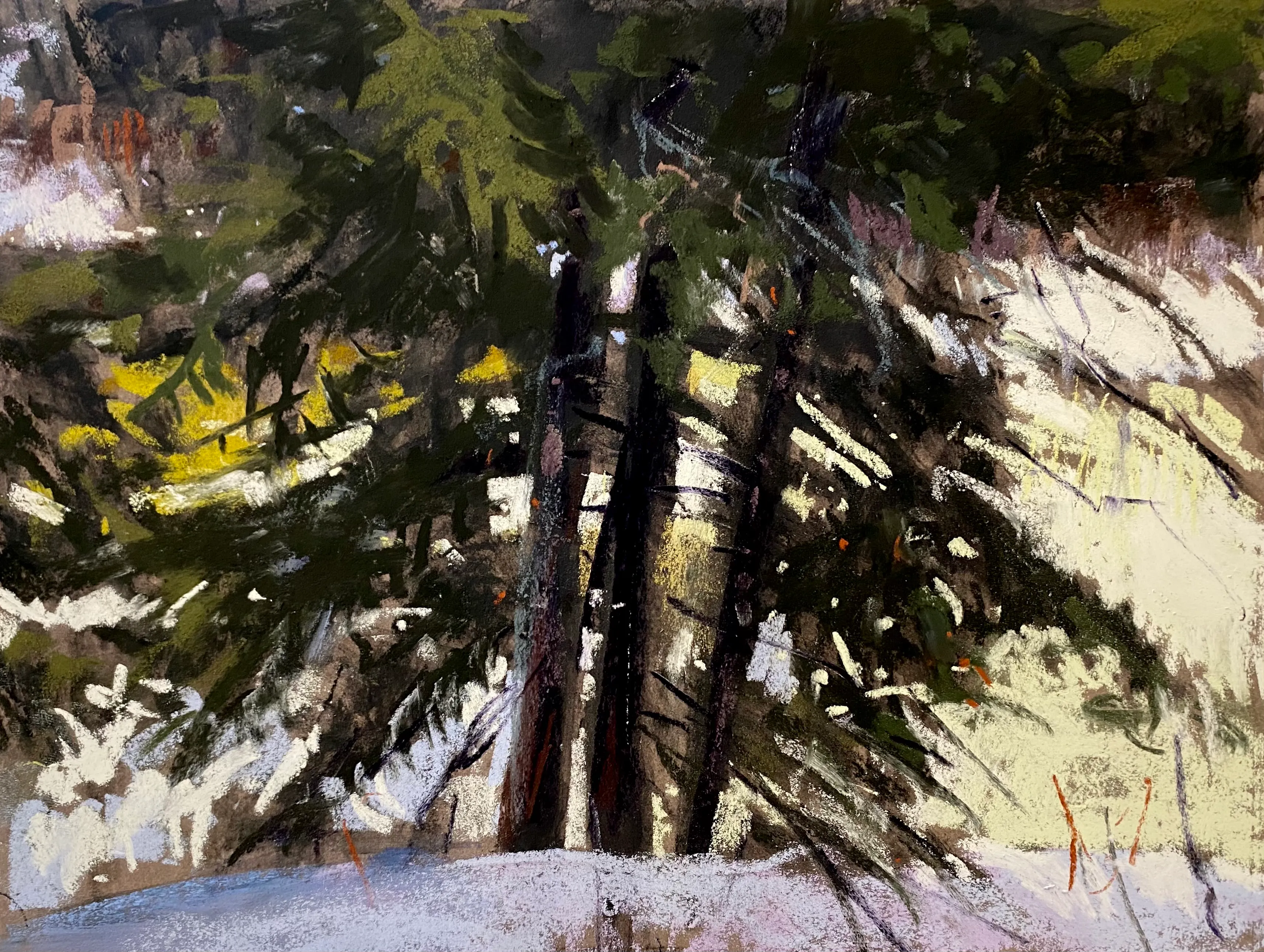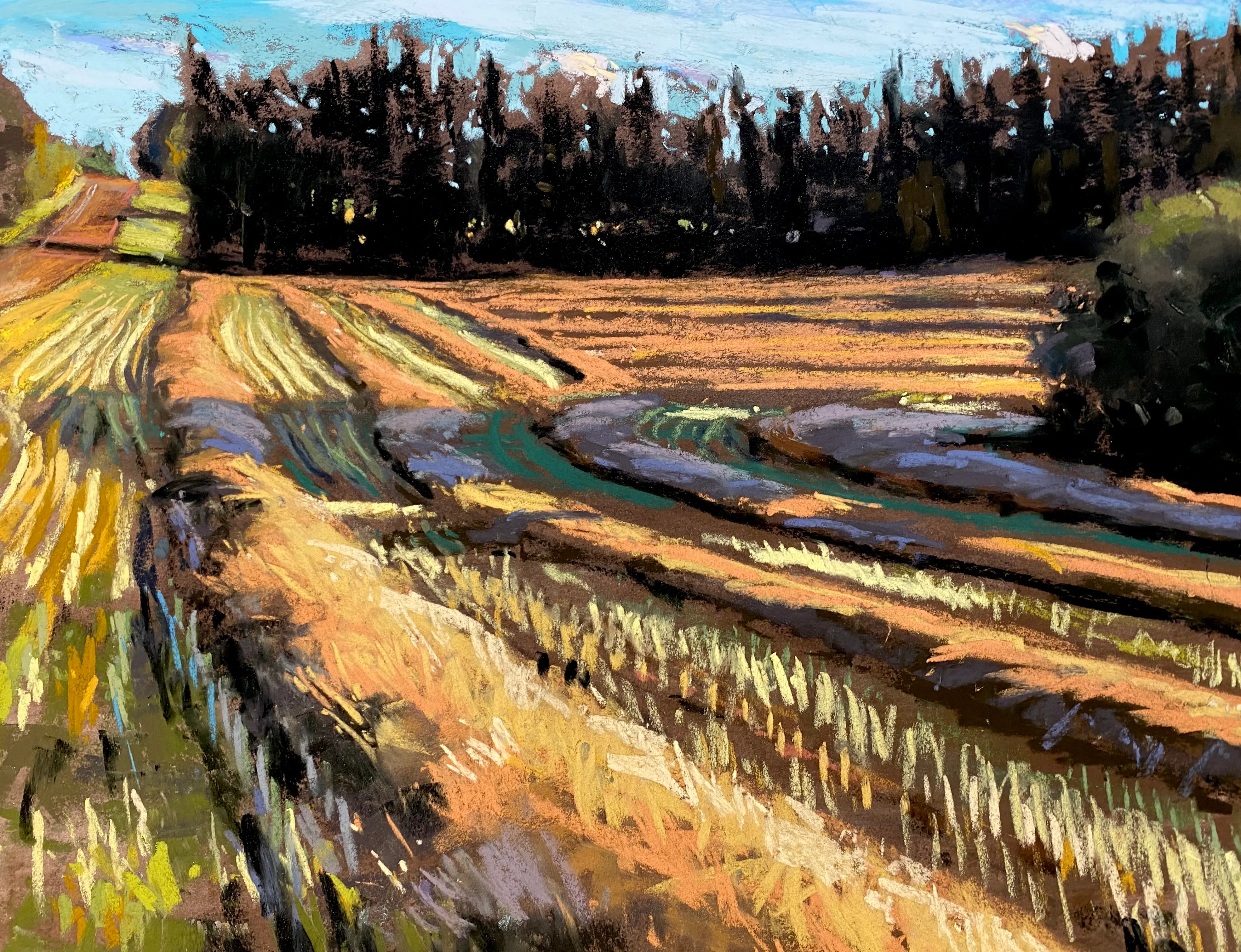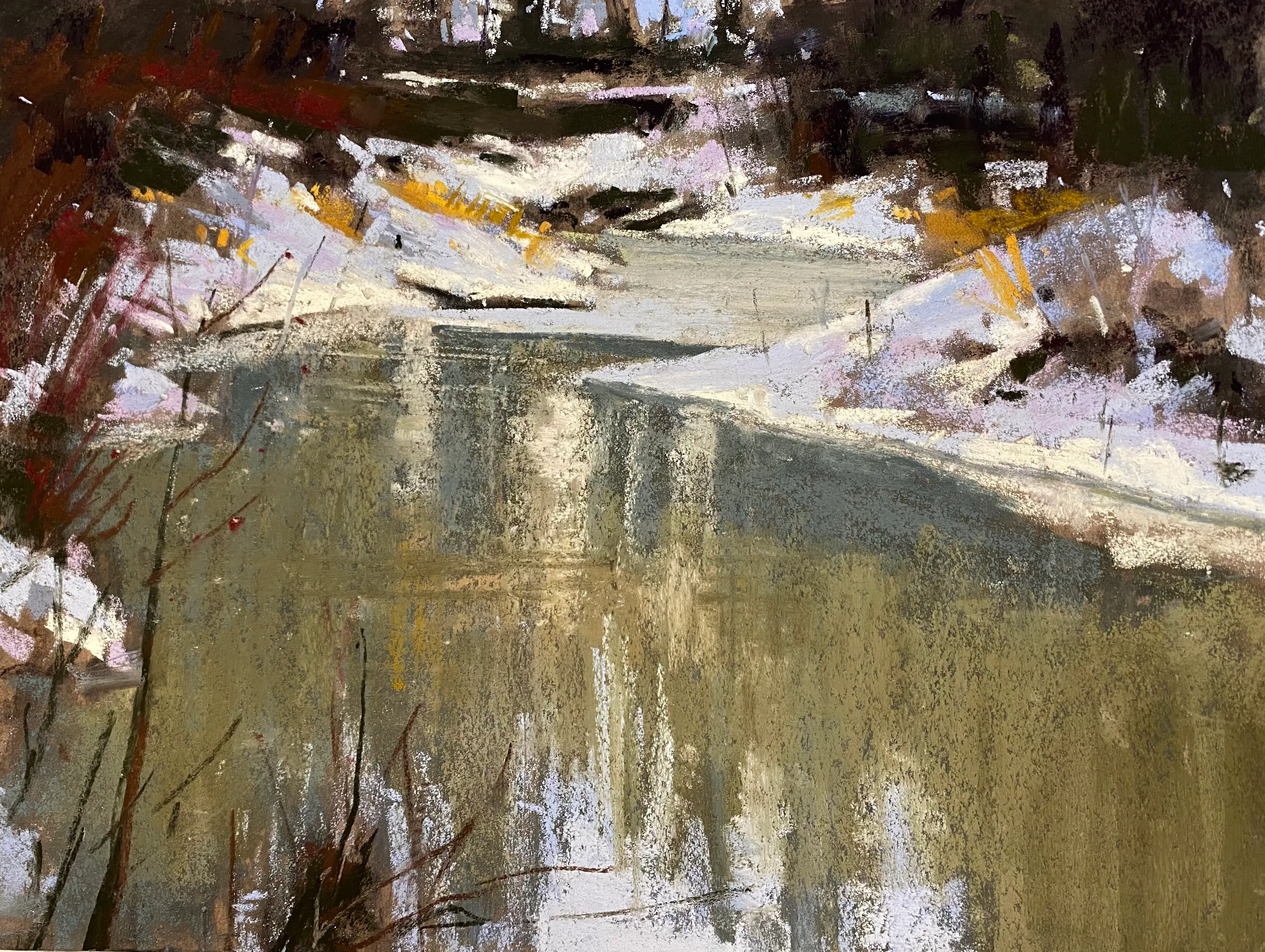 "I work primarily in soft pastels because it is very direct and complements my working process of trial and error, risk taking and immediacy. The sensitivity of touch demanded by pastel is another facet of working with this medium that fascinates me. I see the landscape as a vast canvas (or in my case, mostly paper) that begs exploration. The best way for me to do this is to be pulled into the painting by the medium and trust the process as it is revealed to me."